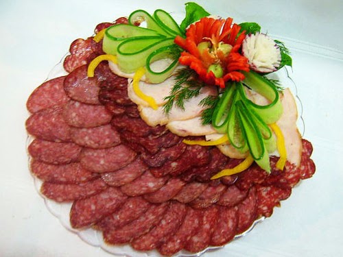 Dekoraciya Na Hrana Oformyane Na Plata S Kolbasi I Sirena Zhena Na Vrha